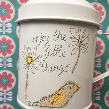 I am constantly inspired by the world around me, I love textiles and applique which developed when I studied Fashion with Textiles Studies. This introduced me to screen-printing which is a goal of mine to introduce to my items soon. I love working with people to create items that burst with memories and special meaning. I offer personalis